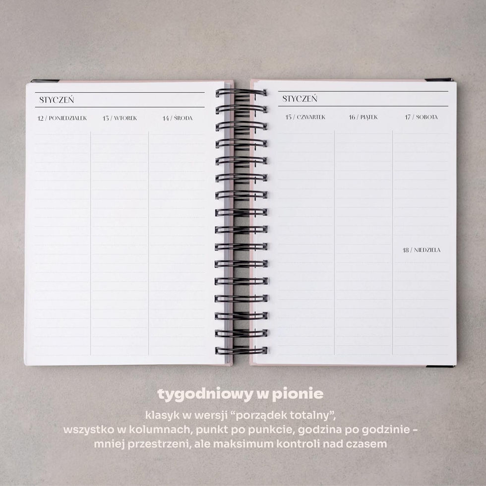 - Brak modułów dodatkowych - zamiast tego dużo miejsca na własne notatki, listy i pomysły. Co miesiąc będzie tylko tabela miesiąca, bo jest super przydatna do wszystkiego.